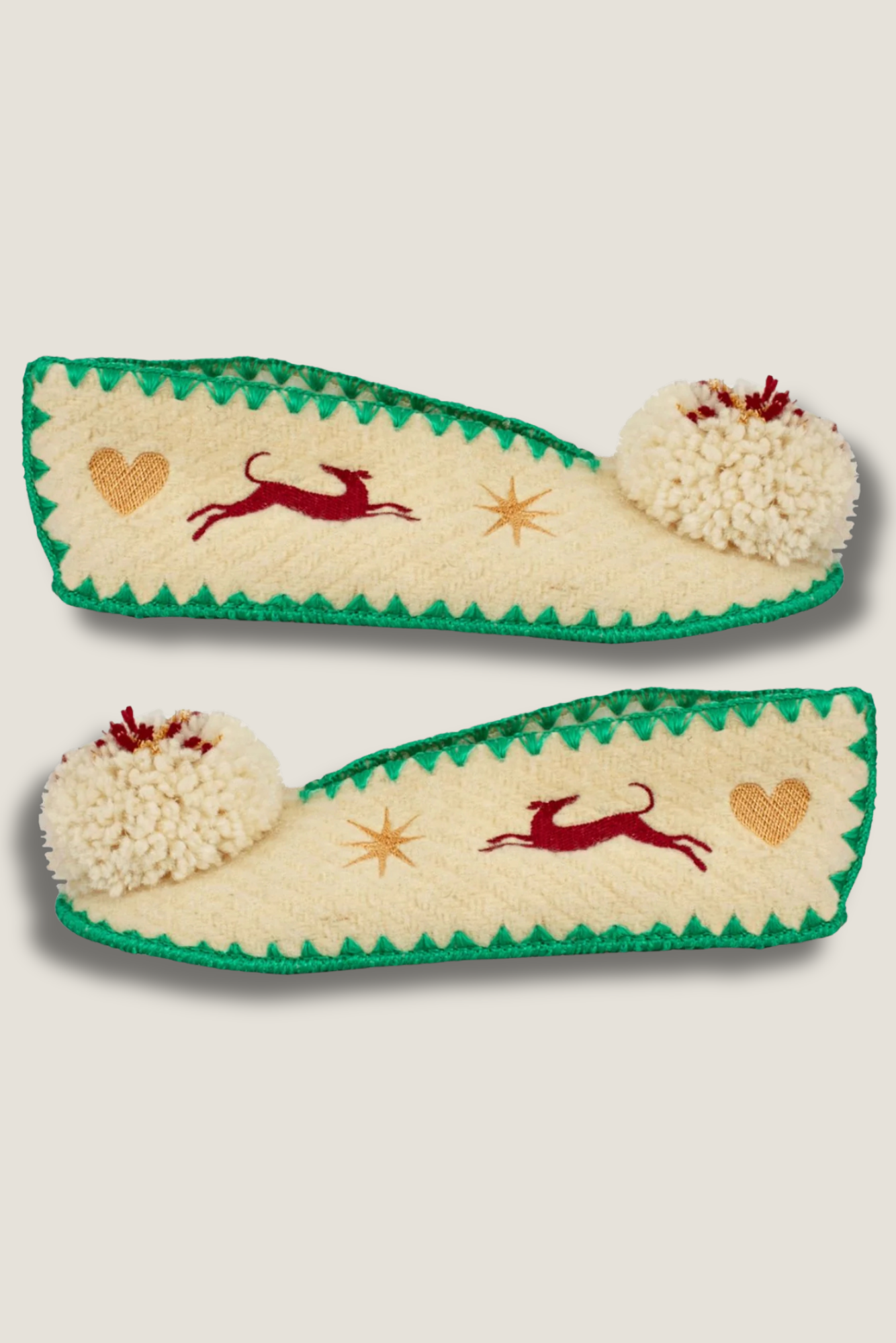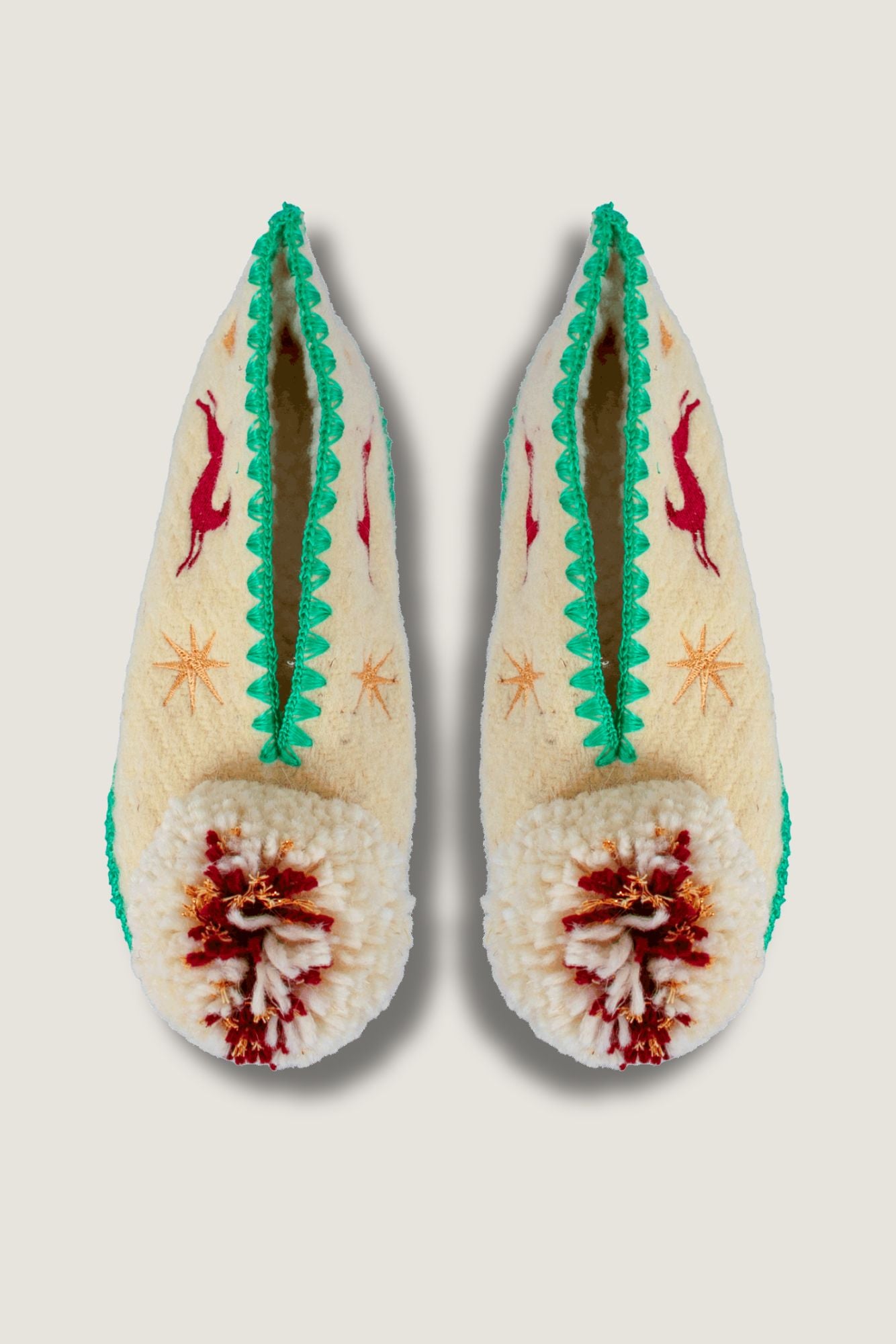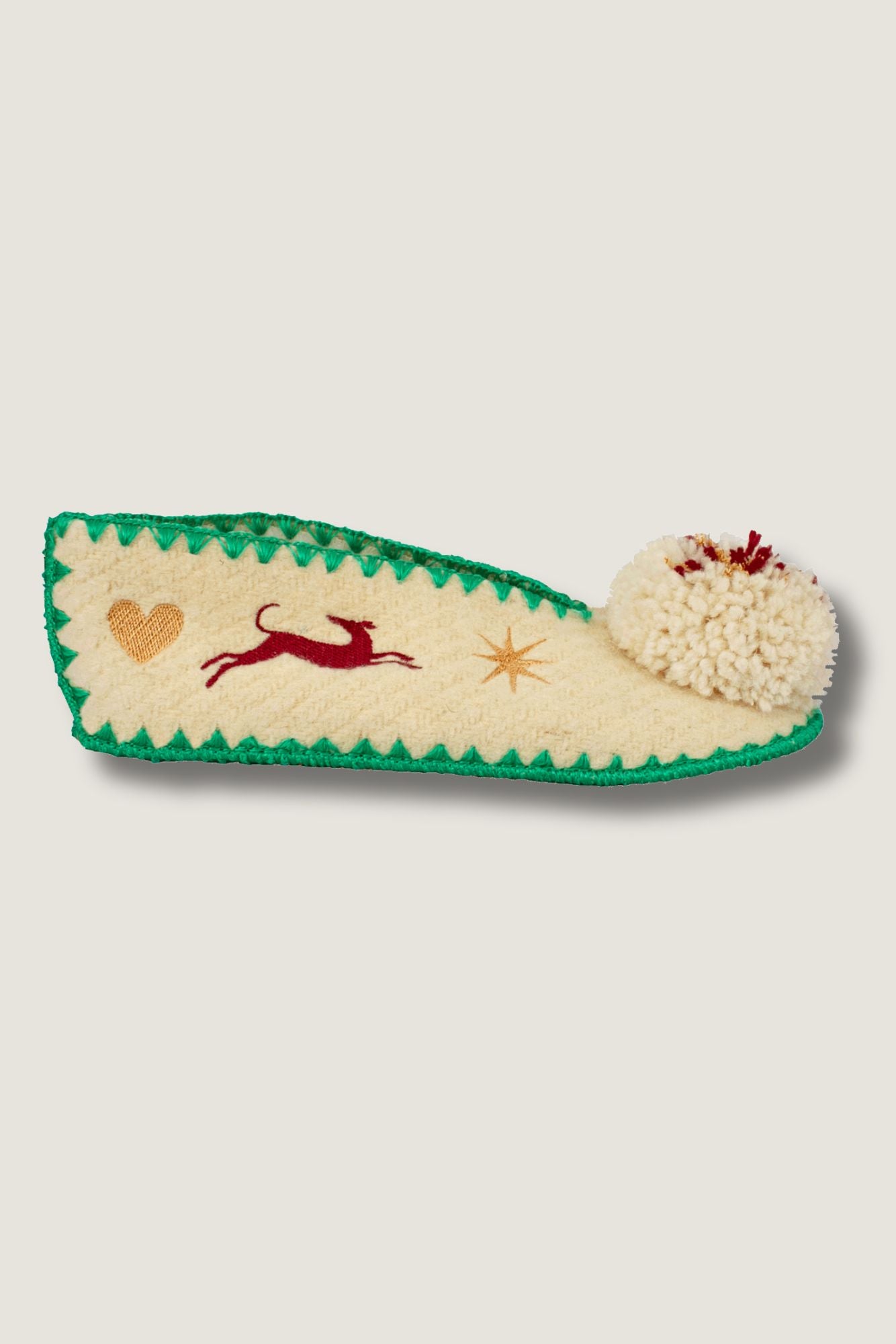 Leur laine naturelle non teintée procure douceur, chaleur et respirabilité, idéale pour toutes les saisons. Le pompon coloré, les broderies contrastées et les finitions soignées en font une pièce textile originale et durable.