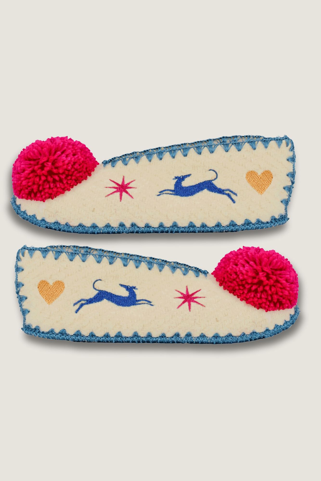 Ces chaussons traditionnels Inspiré du folklore Grec sont revisité ici avec une édition limitée se distinguant par un motif exclusif, imaginé spécialement par Spiti Hêlios, garantissant une création unique et précieuse.